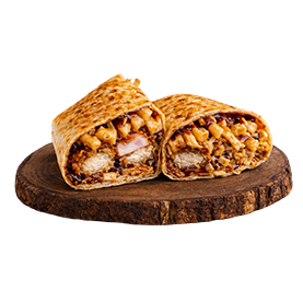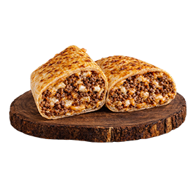 Viande hachée, frites, sauce algérienne, sauce fromagère gratiné au cheddar.