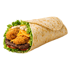 2 Tenders, cheddar, salade, tomates, sauce mayonnaise et poivre.